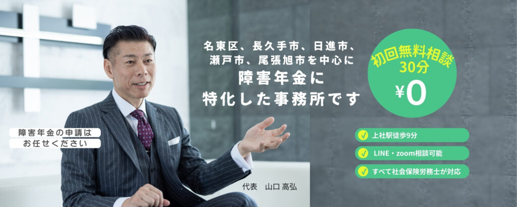 人生の中でアクシデントは誰にでも起こり得ることです。ケガや病気はあなたのせいではありません。障害年金はそんな時あなたの味方になってくれる国の年金制度の1つです。原則20歳~65歳で一定の条件を満たした人には受給する権利があります。人生の中で突然の病気やケガに遭ったとしても誰もが自分らしく生きていく権利があります。その支えとなる障害年金の可能性を地元愛知県名東の私と一緒に考えてみませんか?